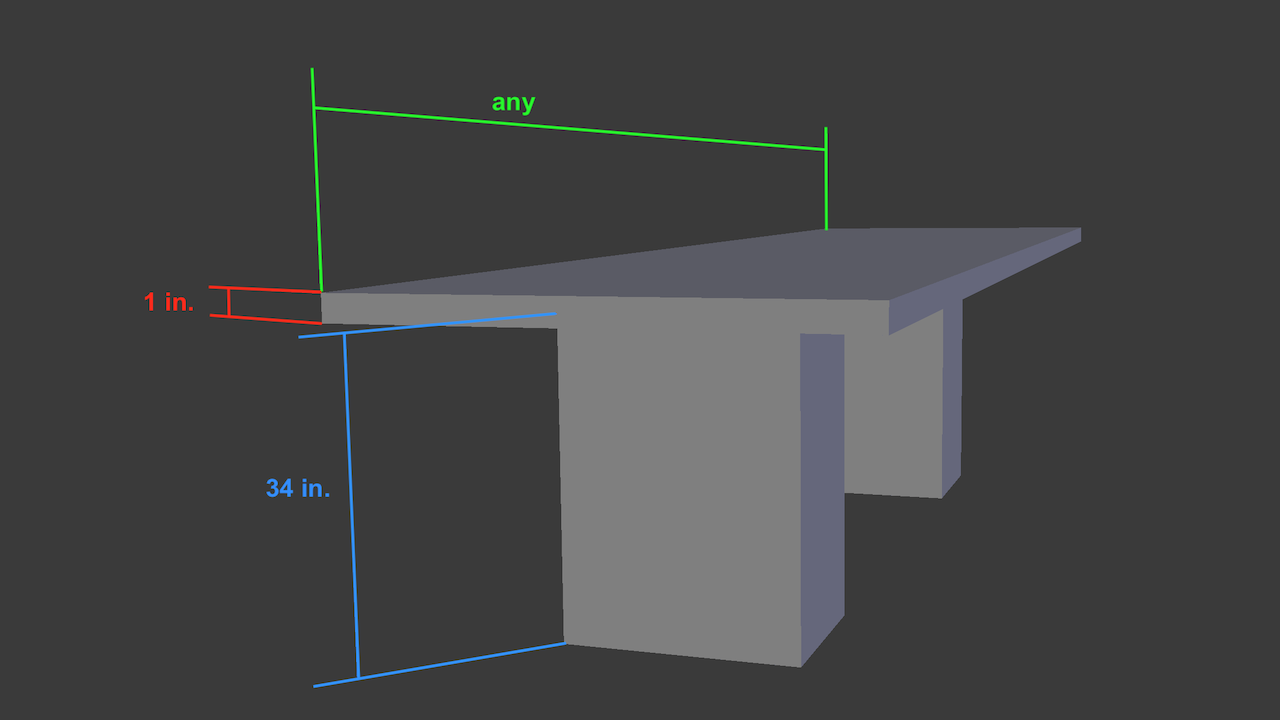 - The minimum goes below 0 inches because if a tableskater were to stand on a platform or increase his or her base footing by some other means you would notice that with knees bent and arms extended all the way, the tableskater's hand would be able to go below the height of such platform or other means of base footing.